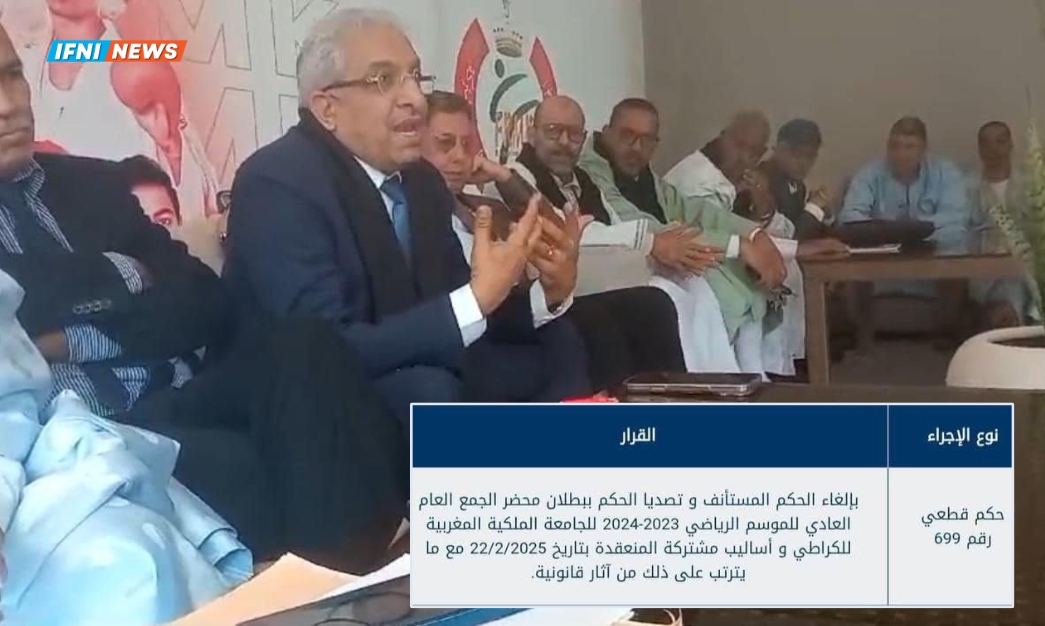 قضت محكمة الاستئناف الإدارية بالرباط ببطلان الجمع العام الانتخابي للجامعة الملكية المغربية للكراطي وأساليب مشتركة، المنعقد خلال شهر فبراير الماضي، وهو القرار الذي أعاد إلى الواجهة ملف التوترات التنظيمية التي شهدتها العلاقة بين الجامعة وعصبها الجهوية بالأقاليم الجنوبية، خاصة بجهة كلميم وادنون.