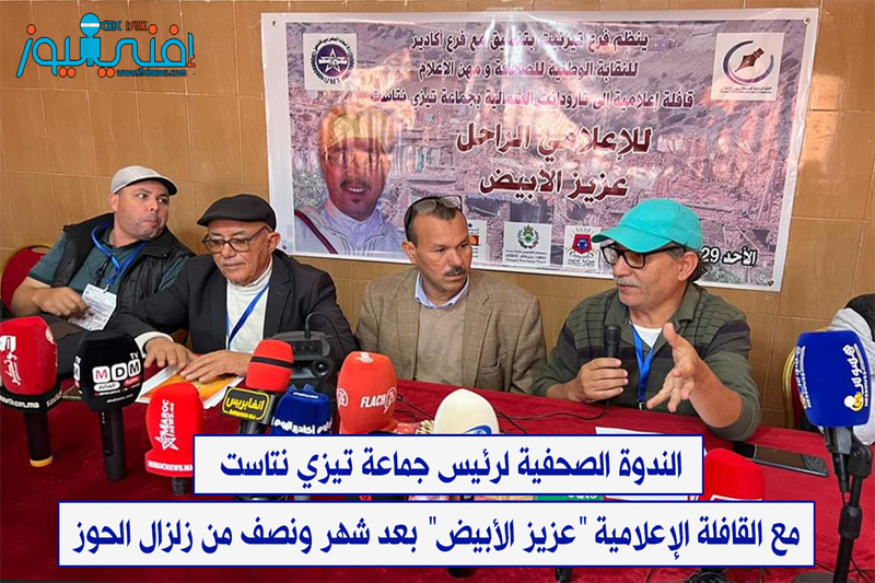 الندوة الصحفية لرئيس جماعة تيزي نتاست مع القافلة الإعلامية “عزيز الأبيض” بعد شهر ونصف من زلزال الحوزإفني نيوز TV إدارة النشر نشر في 2 نوفمبر 2023 الساعة 21 و 50 دقيقة مشاركة بفايسبوكFacebookFacebookمشاركة بتويترTwitterTwitter مشاركة بواتسابWhatsAppWhatsApp Share to ارسال ايميلEmailEmail مشاركة بلينكدانLinkedInLinkedInمشاركة بمسنجرMessengerMessenger طباعةPrintطباعة رابط المشاركة :
