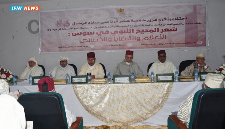 كما شكلت الندوة مناسبة للتأكيد على العناية التي يوليها المجلس العلمي المحلي لتزنيت، بشراكة مع المندوبية الإقليمية للشؤون الإسلامية، للتراث الديني اللامادي، وعلى رأسه فن المديح النبوي، باعتباره رافدا من روافد التربية الروحية والتعبير عن محبة الرسول صلى الله عليه وسلم.