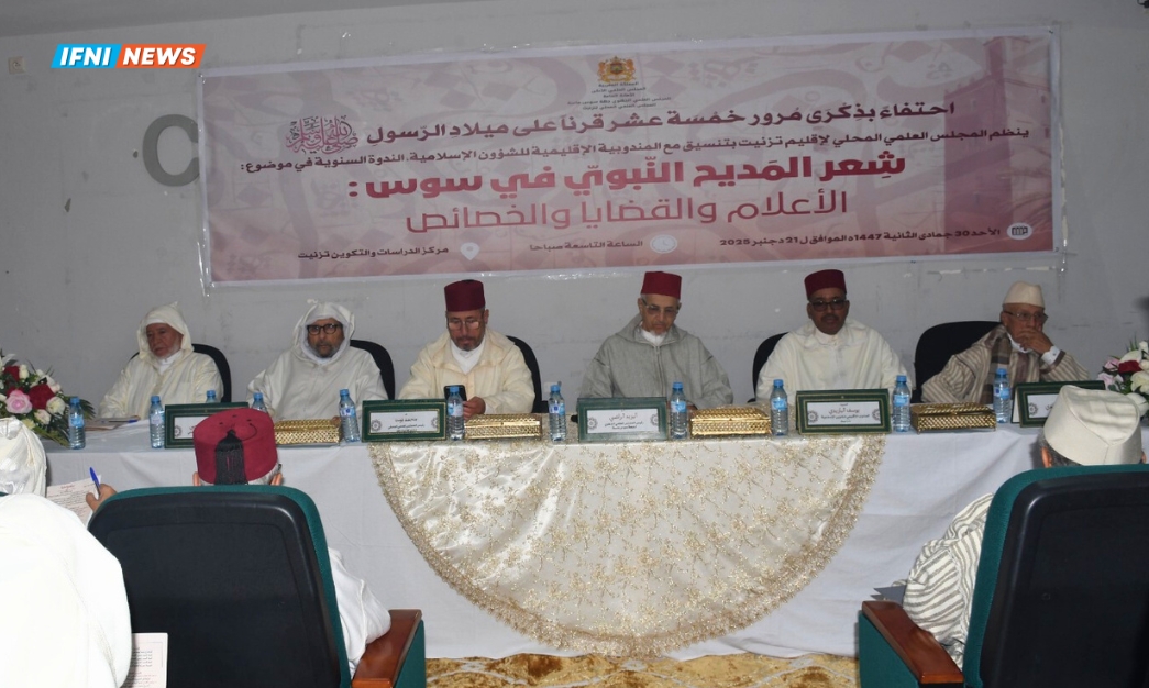 احتضنت مدينة تزنيت صباح أمس الأحد 21 دجنبر 2025، ندوة علمية وفكرية تخليدا لذكرى مرور خمسة عشر قرنا على ميلاد خير البرية محمد صلى الله عليه وسلم، نظمها المجلس العلمي المحلي لتزنيت، بتنسيق مع المندوبية الإقليمية للشؤون الإسلامية، في إطار الندوة السنوية للمجلس.