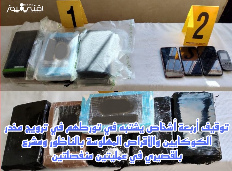 توقيف أربعة أشخاص يشتبه في تورطهم في ترويج مخدر الكوكايين والأقراص المهلوسة بالناظور ومشرع بلقصيري في عمليتين منفصلتين
