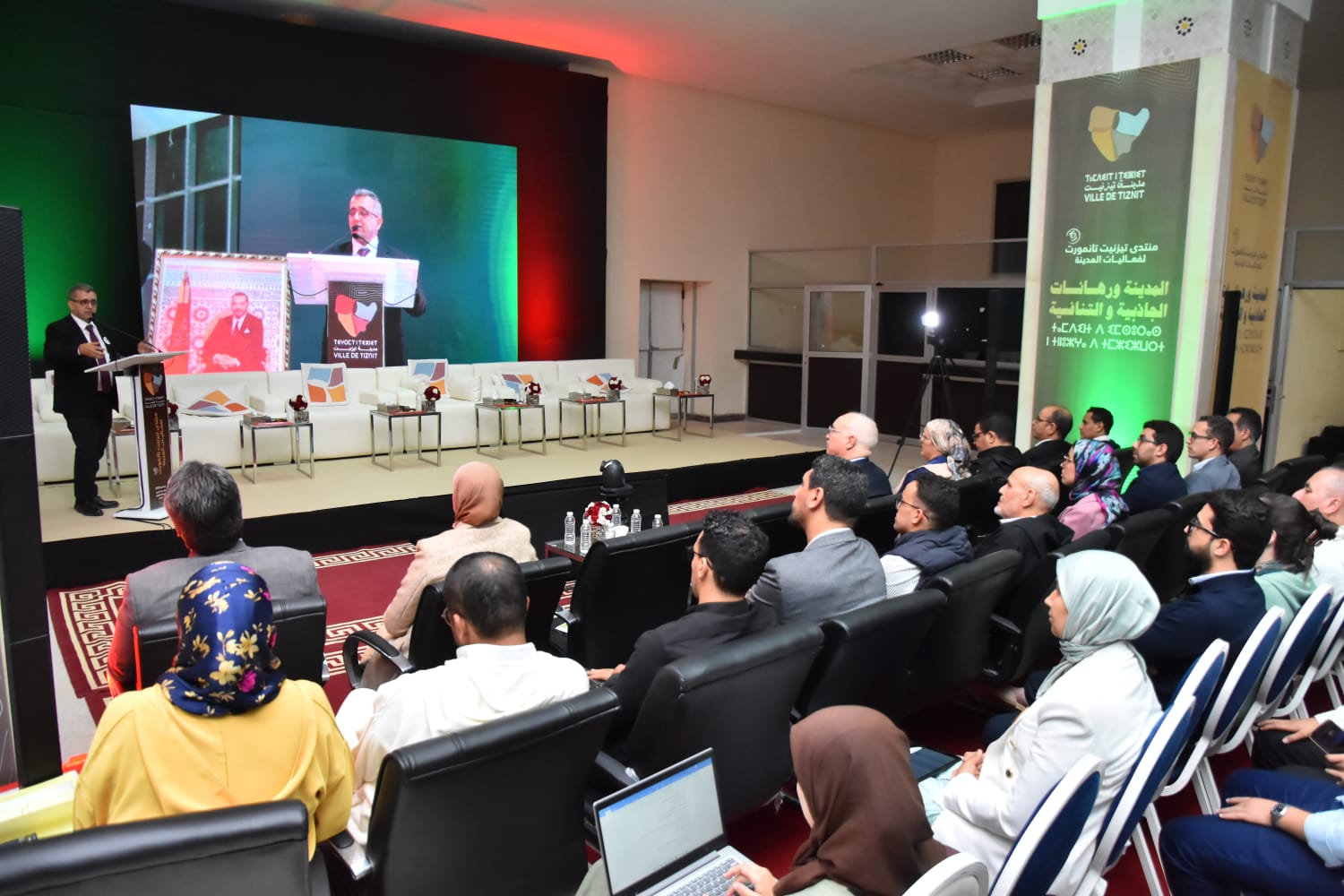 تميز حفل افتتاح المنتدى بحضور عامل إقليم تيزنيت، السيد عبد الرحمن الجوهري، إلى جانب النائب البرلماني عن إقليم تيزنيت ورئيس المجلس الجماعي لتيزنيت، السيد عبد الله غازي، ورئيس المجلس الاقليمي لتيزنيت، السيد محمد الشيخ بلا، ونائب رئيس مجلس الجهة، السيدة سعدية كردوس، وممثل الوكالة البلجيكية للتعاون(ENABEL)، السيد يوسف لعرج وشخصيات بارزة من الهيئات السياسية المنتخبة والمدنية، وشهد الحدث الإعلان عن الهوية البصرية الجديدة للمدينة، التي تهدف إلى إبراز التراث الثقافي وتعزيز التنمية الاقتصادية والسياحية.