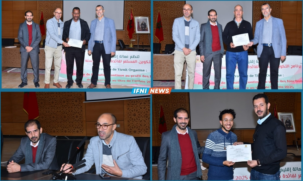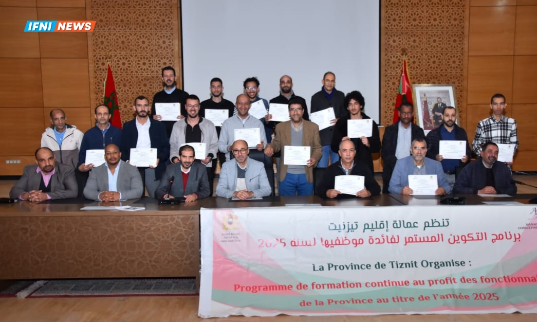 أسدل الستار اليوم الأربعاء 10 دجنبر 2025، بمقر عمالة إقليم تيزنيت، على فعاليات برنامج التكوين المستمر برسم سنة 2025، لفائدة موظفي الكتابة العامة والوحدات الإدارية التابعة للعمالة، في أجواء طبعتها الجدية والتفاعل الإيجابي، بعد دورة تكوينية امتدت على مدى عدة أيام وشهدت نجاحا لافتا على غرار الدورات السابقة.
