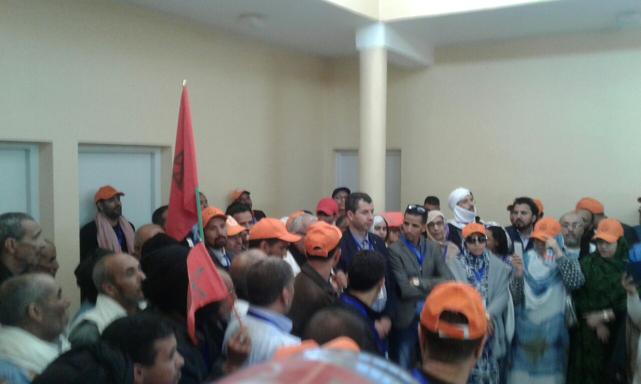بحضور نائب أمينها العام ، وفي خطوة غير مسبوقة وفريدة من نوعها، نقلت المركزية النقابية الاتحاد الوطني للشغل بالمغرب احتفالات فاتح ماي العمالية بمنطقة المحبس التابعة لإقليم أسا الزاك جنوبي الصحراء المغربية، الاحتفال النوعي شارك فيه مناضلات ومناضلي نقابة الحلوطي بجميع أقاليم الجهات الجنوبية الثلاث ( كلميم واد نون، الداخلة واد الذهب والعيون الساقية الحمراء) حيث عرف الحفل تنظيم قافلة للسيارات الخاصة لمناضلي المنظمة النقابية ( قرابة 40 سيارة ) حسب شهود عيان، انطلقت من مدينة أسا في اتجاه الزاك، حيث نظمت وقفة احتفالية أمام البلدية رددت فيها شعارات مطالبة بكرامة وحقوق العمال، لينطلق الجميع في نظام وانتظام في اتجاه منطقة المحبس قرب تندوف، وبعد إذن الأجهزة الأمنية والعسكرية المغربية المرابطة هناك ، دخلت القافلة العمالية حيث وجدت في استقبالها استقبالا حارا شيوخ القبيلة و أعيان جماعة المحبس يترأسهم رئيس الجماعة، وبعد تناول التمر والحليب ، ألقى الكلمة بالمناسبة رئيس الجماعة عبر فيها عن اعتزازه وفرحه بقدوم المناضلين لزيارة المنطقة وصلة الرحم،خصوصا وأن ضمنهم مجموعة من أبناء وبرلمانيي المنطقة الحريش ومنية الموذن ، مطالبا عبد الصمد مريمي بصفته مستشارا برلمانيا بالاستجابة لمطلب ساكنة الجماعة والمتمثل في إحداث عمالة إقليم المحبس جديرية أكويديم لإيقاف استفزازات أعداء الوحدة الترابية،وخصوصا ماوقع بأبريل الأخير بالمنطقة العازلة بالمحبس. هذا وأكد مريمي في كلمته هو الآخر استعداد عمال وعاملات المغرب من طنجة إلى الكويرة للذوذ عن وحدة الوطن والدفاع عن مغربية الصحراء تحت القيادة الرشيدة لجلالة الملك، شاكرا حسن وحفاوة استقبال رئيس الجماعة وساكنة المنطقة، مشددا على أحقية مطلب الساكنة ملتزما برفع ملتمسهم إلى رئيس الحكومة ووزير الداخلية لإطلاعهما عن كثب عن حيثيات أحقية الساكنة وعدالة مطالبها. ليتم في الفترة المسائية بساحة محمد السادس بأسا تنظيم مهرجان خطابي أطره نائب الأمين العام للاتحاد عبد الصمد مريمي تطرق فيه لآخر مستجدات الحوار الاجتماعي وآثار تعثراته على مستقبل الحياة المهنية للعمال ماديا ومعنويا،مشيرا إلى عدم كفايتهم كمركزية نقابية بالعرض الحكومي المقدم، مطالبين بالمزيد مع تطبيق ماتبقى من التزامات الحكومة لاتفاق 26 أبريل 2011 .